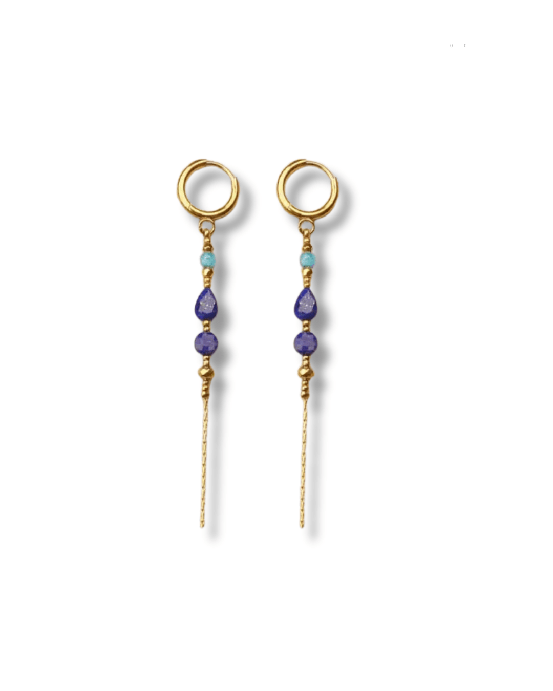 Les boucles Phoenix associent une mini créole dorée à une chaîne pendante délicatement ornée de perles bleues et turquoises.