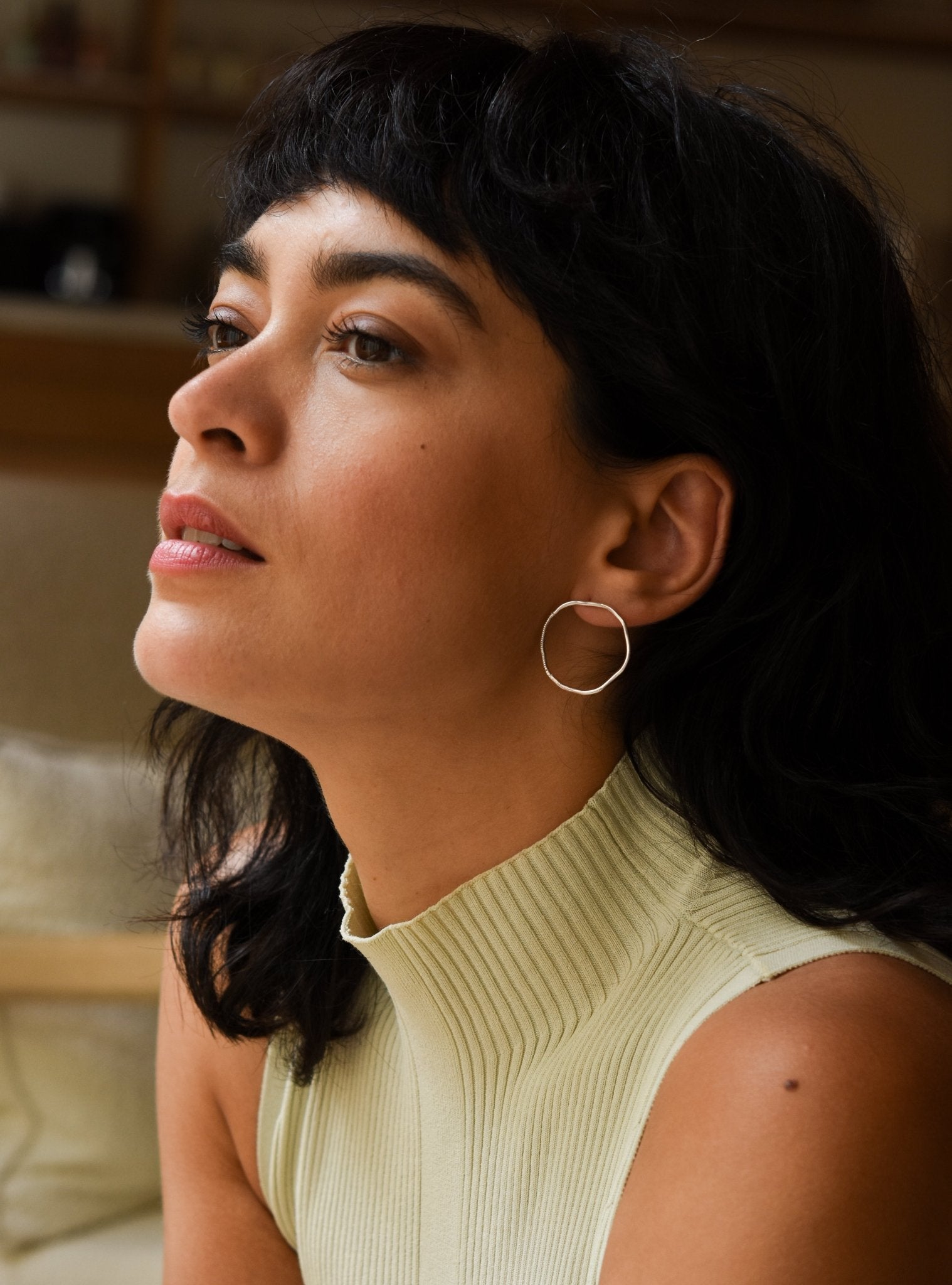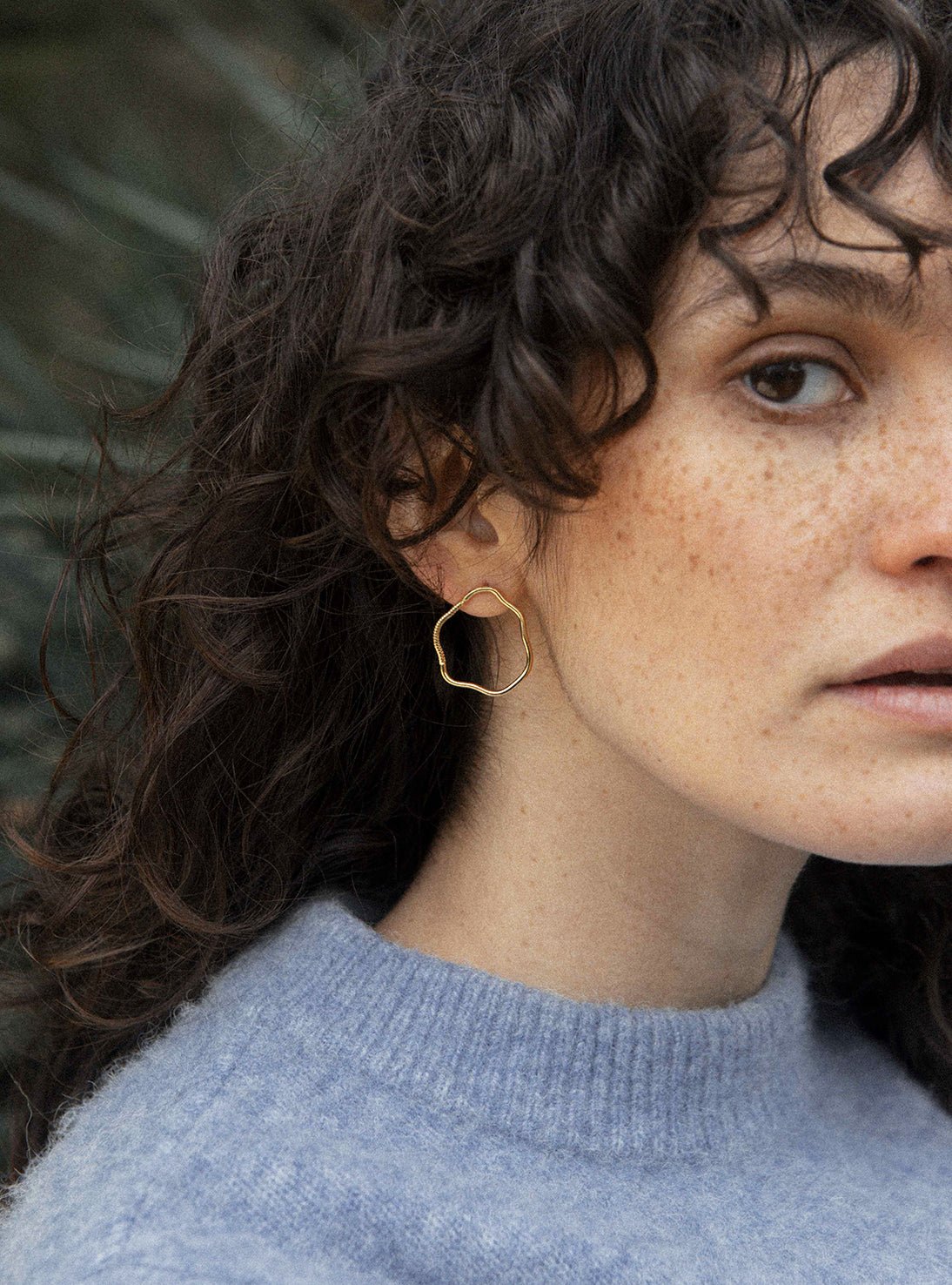 Les créoles Nazaré traduisent cette poésie du mouvement à travers leurs lignes souples et imparfaites, façonnées à la main dans l’atelier parisien de Judith Benita.