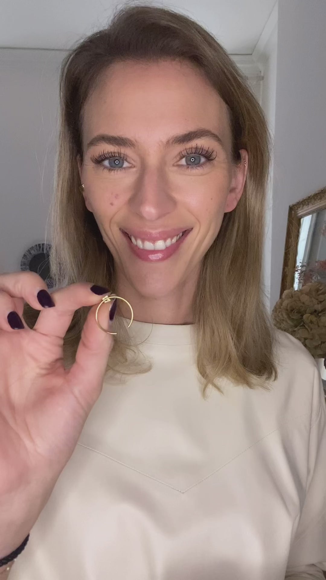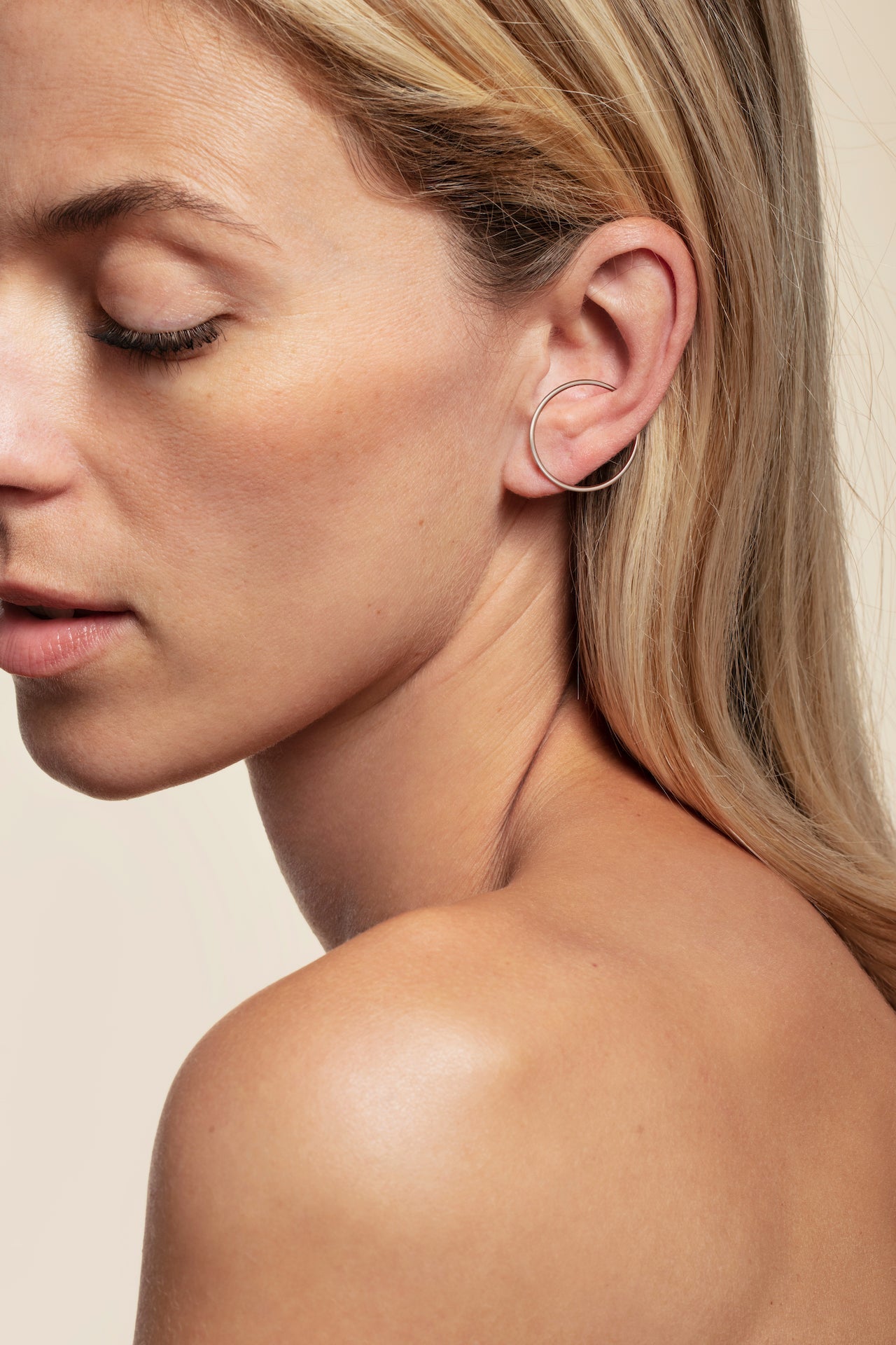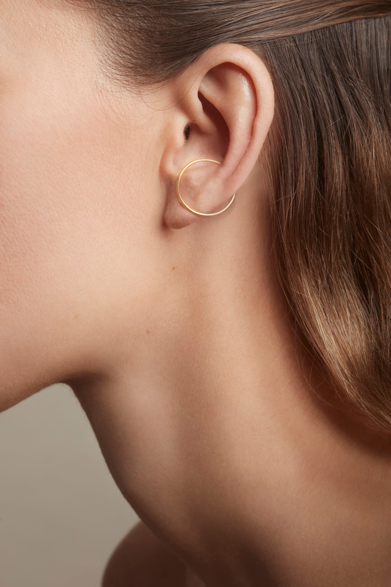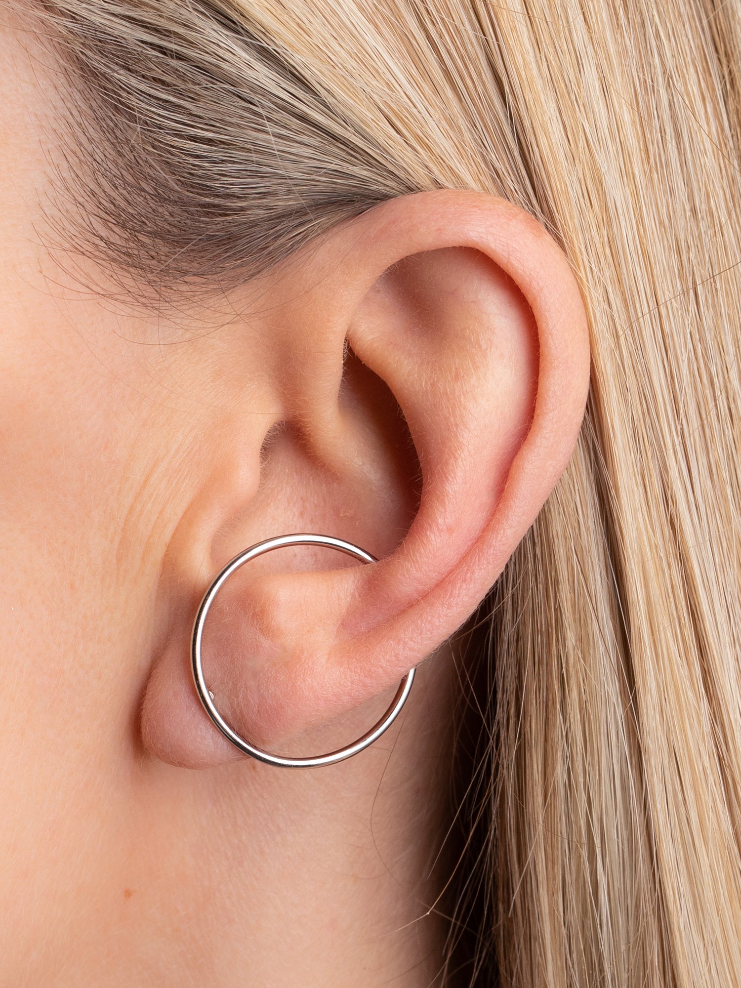 Portez-la comme une créole classique, puis glissez l’ouverture dans le creux de l’oreille pour créer l’effet trompe-l’œil.