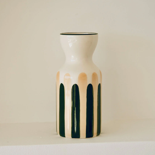 Grand vase avec anses Mediterranea - Rayures vert/beige
