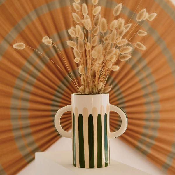 Grand vase avec anses Mediterranea - Rayures vert/beige