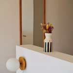 Avec ses rayures peintes à la main et sa silhouette élancée, le vase Totem Mediterranea rayé vert/beige s’impose comme une pièce décorative forte et intemporelle. Sa hauteur et son format en font l’allié parfait pour accueillir un bouquet généreux ou quelques branches décoratives. Entièrement fabriqué à la main au Portugal, il allie authenticité artisanale et modernité.
