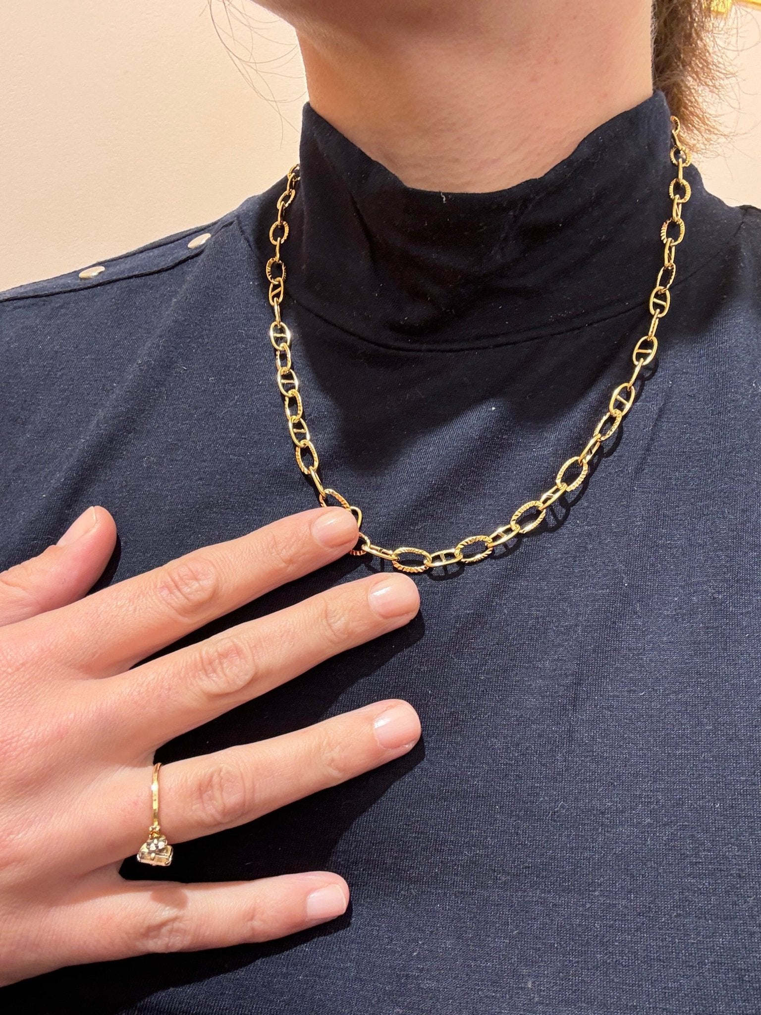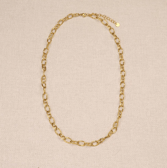 • L’alternance de maillons lisses et striés, raffinée et moderne..